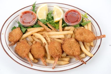 choice of coleslaw or salad and Choice of: Fries, Baked Potato, Greek Potato or Rice