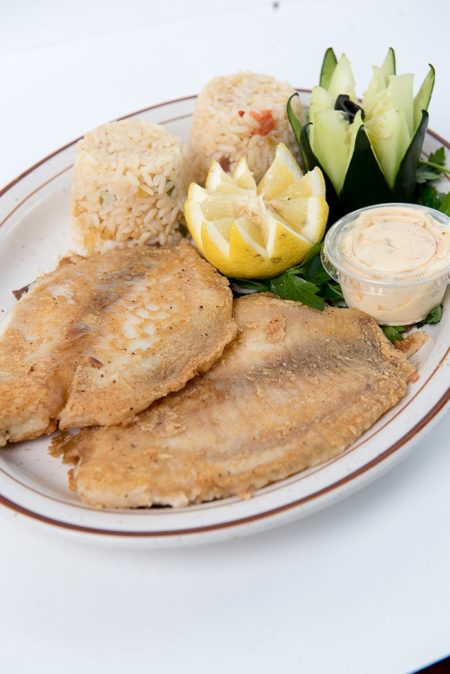 choice of coleslaw or salad and Choice of: Fries, Baked Potato, Greek Potato or Rice